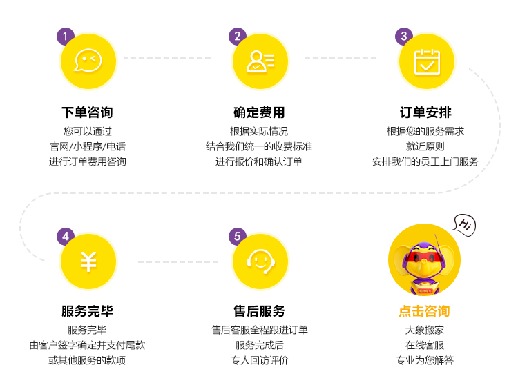 大象搬家,將不斷進(jìn)取,服務(wù)好每一位顧客是我們的終極目標(biāo),并立志成為中國(guó)一流的、新時(shí)代的搬家、到家服務(wù)品牌。攜手大象,選擇大象搬家,您的家庭事業(yè)必將順風(fēng)順?biāo)宦贩被ㄋ棋\。